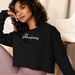 Did you know that fashion and comfort can be combined? This fleece crop sweatshirt is here to prove the point. The soft fabric feels extra soft to the touch, and the trendy cut with a ribbed neckline and raw hem comes right out of fashion magazines while still keeping it casual.